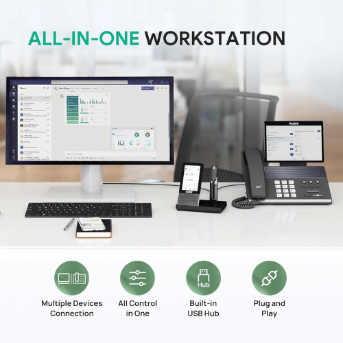 Wideband audio provides superior sound quality for both incoming and outgoing calls. Teams can collaborate efficiently during VoIP calls, webinars, and Microsoft Teams meetings with natural, high-definition voice clarity.